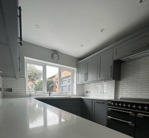 Here, we showcase a stunning example of a classic shaker-style kitchen with dust-grey painted doors.